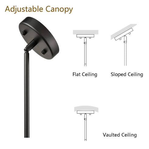 The black pendant lighting is ETL listed for dry locations. A hardwired connection is applicable to the pendant light. It comes with three 12-inch rods and one 6-inch rod. It can be installed on sloped ceilings.